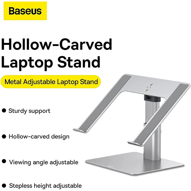 اگر به دنبال پایه‌ای مقاوم، زیبا و کاربردی برای لپ‌تاپ خود هستید، Baseus Metal Adjustable Laptop Stand Silver انتخابی ایده‌آل است. این پایه با بدنه‌ای از آلیاژ آلومینیوم و طراحی مینیمال، علاوه بر زیبایی، دوام و استحکام بالایی دارد و وزن لپ‌تاپ را به‌راحتی تحمل می‌کند.