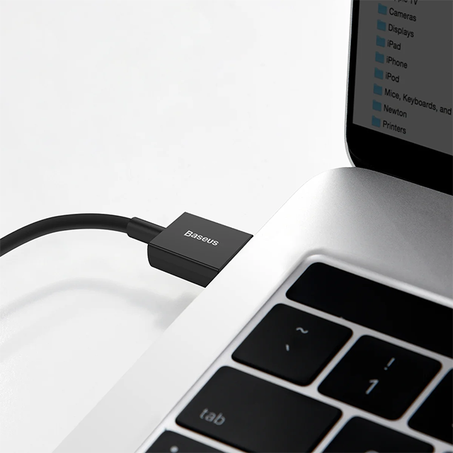 کابل Baseus Superior فایلها را بین دستگاهها با سرعت بالا منتقل میکند. کافی است گوشی خود را به رایانه وصل کنید تا انتقال داده سریع انجام شود.