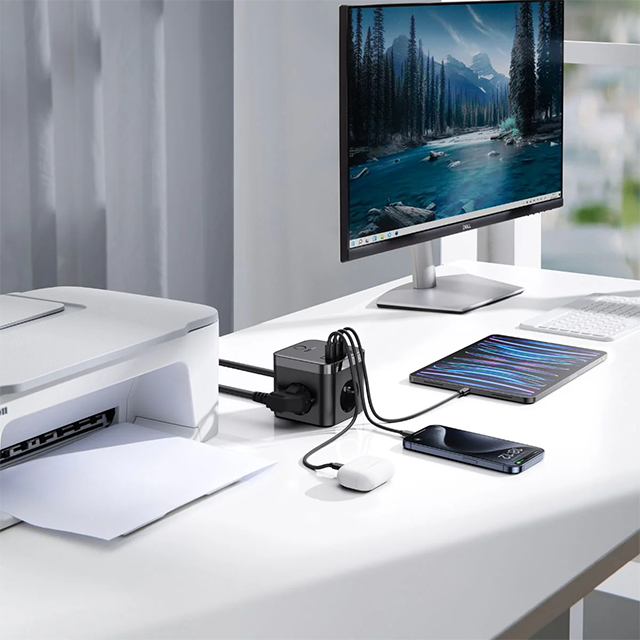 این پاور استریپ از فناوری GaN (گالیوم نیترید) استفاده میکند که علاوه بر کاهش اندازه دستگاه، دما را پایین نگه میدارد و راندمان شارژ را بالا میبرد. همچنین با توان ۳۰ وات، شارژ سریع موبایل و تبلت شما تضمین شده است.
